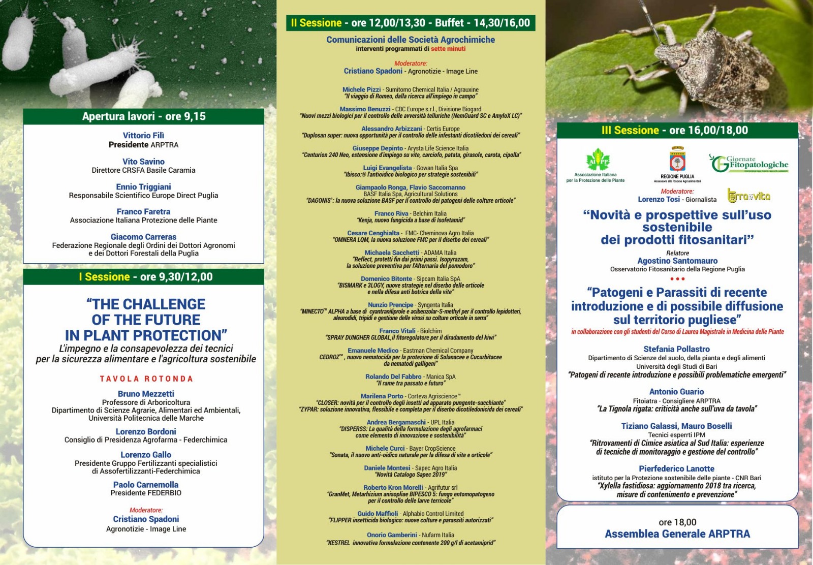 Il tradizionale appuntamento organizzato dall’ A.R.P.T.R.A., con il patrocinio e la collaborazione di diversi soggetti istituzionali (Assessorato alle Risorse Agroalimentari della Regione Puglia, Federazione Reg. degli Ordini dei Dott. Agronomi e Dott. Forestali della Puglia, C.R.S.F.A. “Basile Caramia”, A.I.P.P. – Associazione Italiana per la protezione delle piante, Giornate Fitopatologiche, Collegio dei Periti Agrari e Periti Agrari Laureati della Puglia, Collegio degli Agrotecnici, Europe Direct – Puglia, L.A.me.T.A, Antesia, IMAGE LINE) e dedicato alla difesa fitosanitaria.
