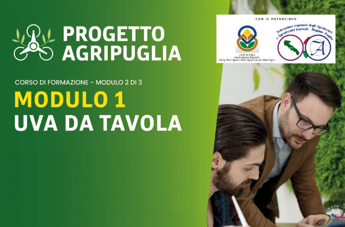 Tre giornate e tanti temi da approfondire: si articola così uno dei corsi di formazione promossi all’interno del progetto Agripuglia per la Promozione e lo Sviluppo dell’Agricoltura di Precisione.