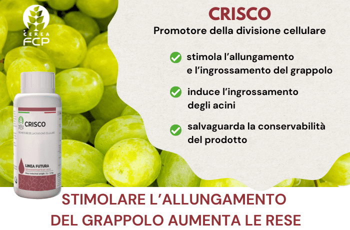 Il mercato dell’uva da tavola è sempre più esigente in quanto il consumatore è attirato da grappoli di medie dimensioni composti da acini grandi, consistenti e di forma regolare, con un colore uniforme che trasmette un senso di genuinità. La produzione e la qualità del raccolto dell’uva da tavola sono strettamente correlati alla lunghezza e al vigore del grappolo (detto anche rachide o raspo). Un corretto allungamento del rachide favorisce non solo una migliore distribuzione degli acini, ma assicura anche il trasporto efficiente dei nutrienti, influendo direttamente sulla qualità complessiva. Al contrario, un grappolo molto compatto e non perfettamente sviluppato determina ripercussioni negative sulla gestione agronomica e fitosanitaria del vigneto.