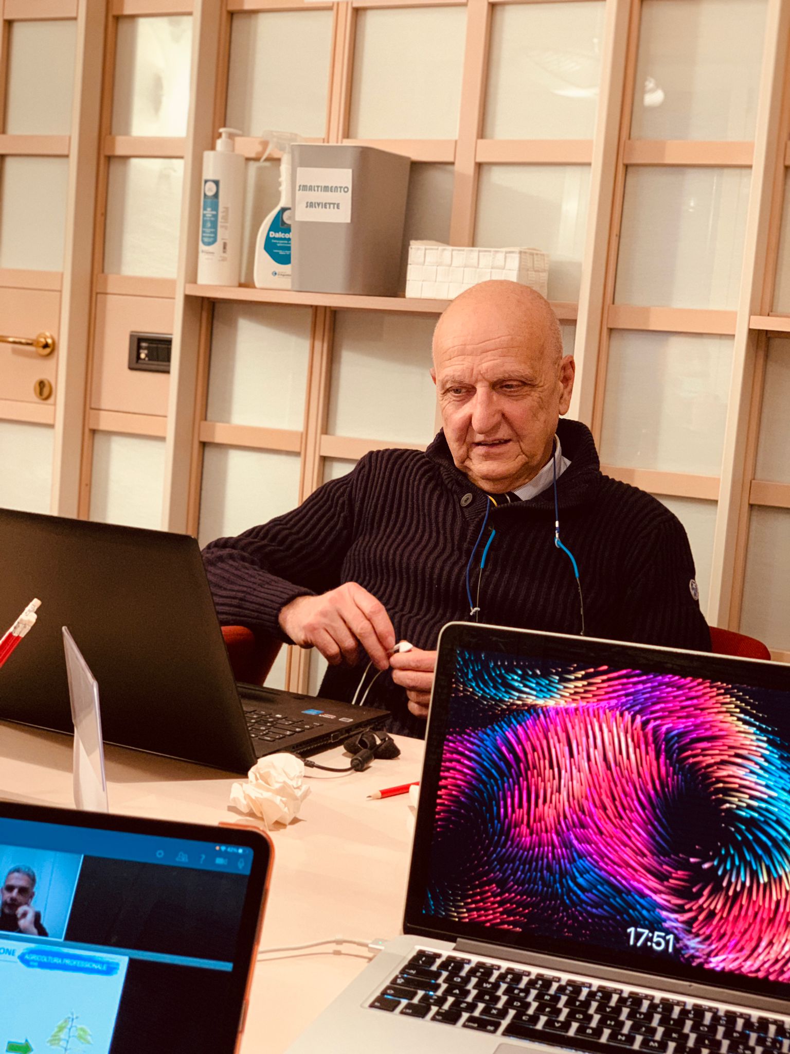 In foto: la cabina di regia della Biostimolanti Conference. Gli organizzatori Fruit Communication e ARPTRA.