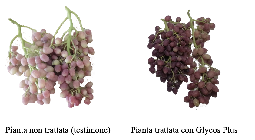 Per il secondo anno consecutivo, si sono svolte in puglia (Trani – BAT) prove di colorazione su Supernova, una varietà apirena precoce a bacca rosa caratterizzata da difficoltà di colorazione. La prova ha messo a confronto piante trattate con Glycos Plus con altre trattate con uno prodotto di riferimento (standard commerciale) e piante non trattate (testimone).