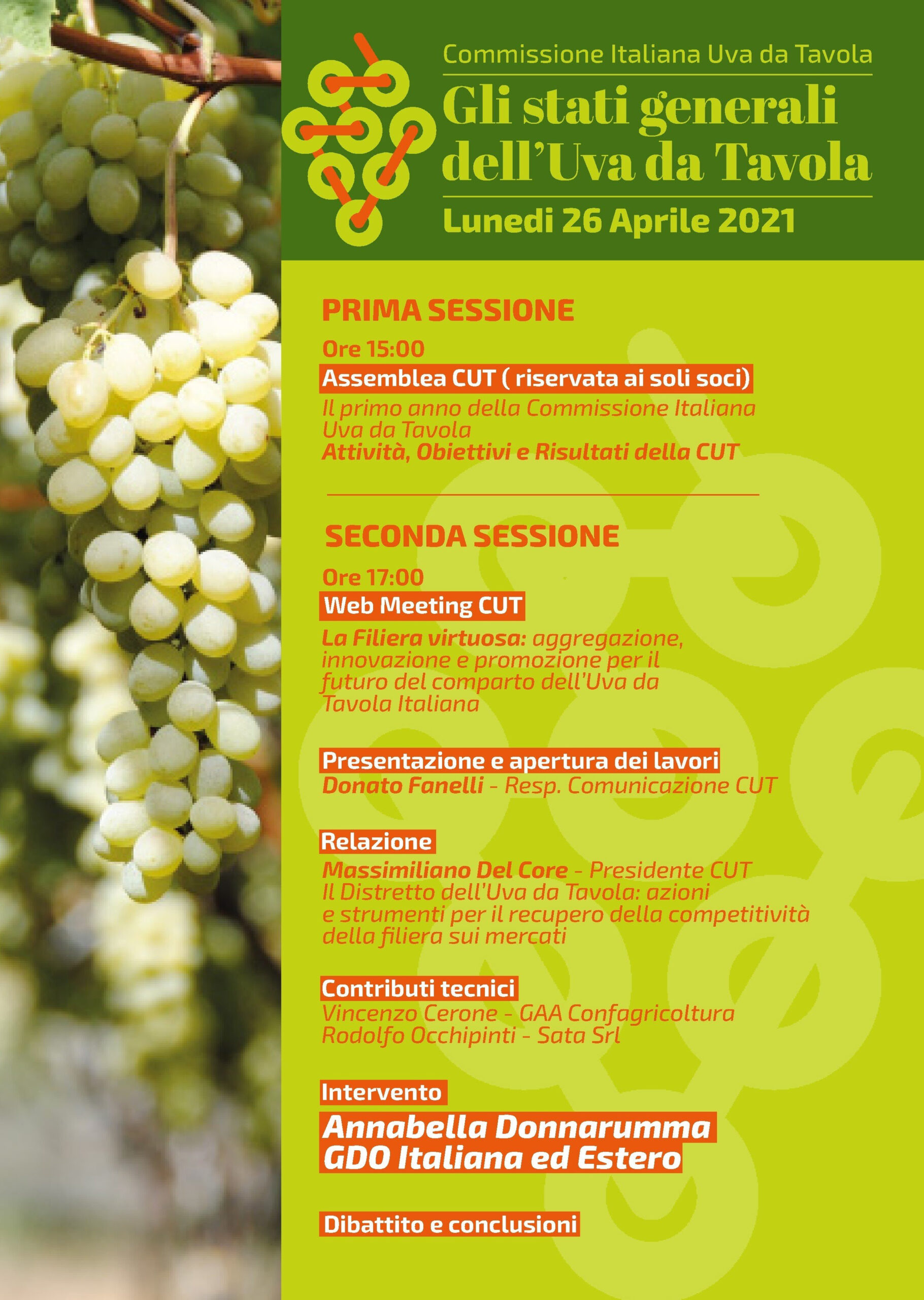 Bene, se avete dubbi, domande o semplicemente siete curiosi e volete saperne di più potete: rileggere l’articolo cliccando qui, oppure prendere parte a: “Gli Stati Generali dell’Uva da Tavola“, che si terranno lunedì 26 aprile alle ore 17:00. L’appuntamento sarà ovviamente online.