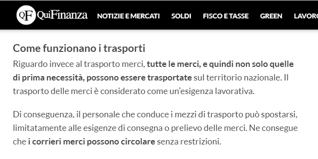 I nuovi provvedimenti non bloccheranno nemmeno i trasposti su gomma, così come precisato dal quotidiano quifinanza.it.