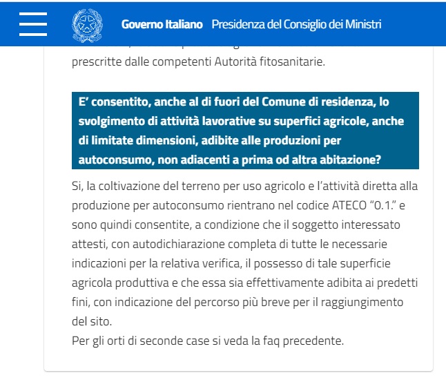 “Gli agricoltori hobbisti possono tornare a curare il proprio orto – esordisce il sottosegretario -; in seguito alle misure messe in atto dal governo per contenere il COVID-19, gli spostamenti erano consentiti solo per gli agricoltori professionisti o per chi avesse nel proprio podere animali da accudire. L’ultimo aggiornamento sul sito governo.it ha chiarito esplicitamente la questione”.