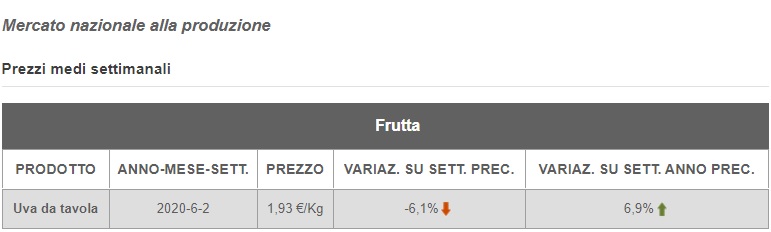 Nella secnda settimana di giugno si è intensificata la raccolta per l’uva da tavola. Ora si vedono in commercio le prime quote della varietà Vittoria.