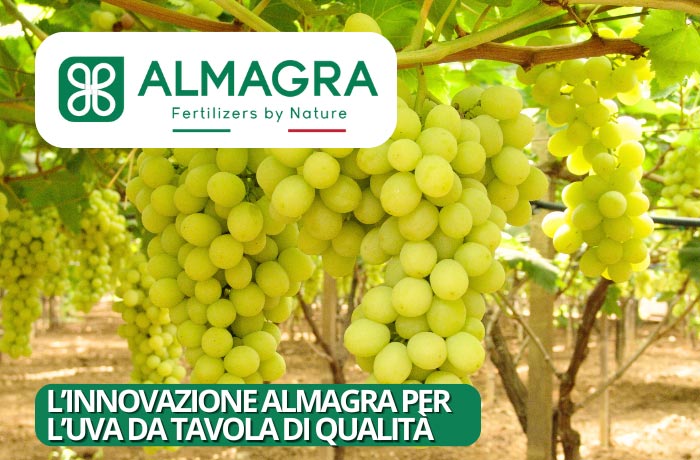 La viticoltura moderna è sempre più attenta ad adottare sostanze e tecniche ecocompatibili al fine di ottenere uve con caratteristiche eccellenti. In particolare, grappoli e bacche uniformi e ben sviluppati, intensità e uniformità di colorazione, croccantezza della bacca e della polpa, dolcezza, tenacia della buccia e conservabilità in post raccolta. Tutto ciò, conservando le caratteristiche quali-quantitative tipiche di ogni varietà. Gli innovativi prodotti Almagra – leader nel settore dei fertilizzanti – rappresentano oggi certamente un efficace strumento per le migliori produzioni di Uva da Tavola.