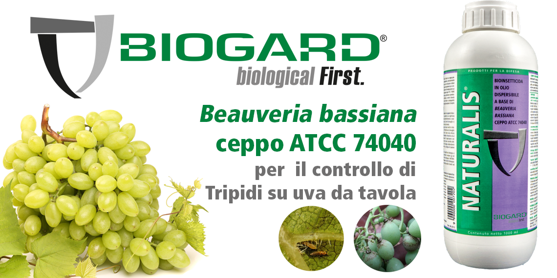 Su uva da tavola Naturalis è particolarmente utile per il controllo del tripide presente nella fase fiorale con trattamenti a partire dall’inizio della fioritura e poi ripetuti fino a fine fioritura.