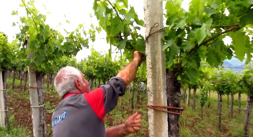 Ma in cosa consiste la potatura verde? “Consiste – spiega Pugliese – nelle operazioni di spollonatura, ossia l’eliminazione di germogli che si sono originati alla base del tronco da piante di origine americana. E poi: nella scacchiatura, ossia l’eliminazione di germogli sterili sul tronco e sulla parte produttiva della vite, lasciando quei germogli utili per la forma di allevamento che si vuole ottenere; nella defogliazione; nella cimatura; nella legatura; nel palizzamento, ossia l’orientamento dei tralci della vite lungo le strutture di ferro”