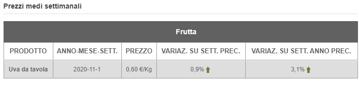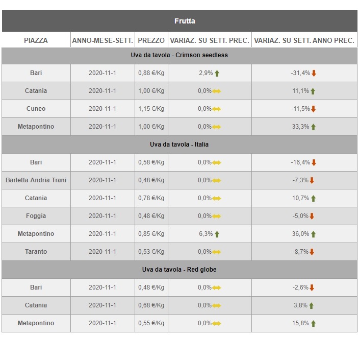 Solo per la varietà Italia di provenienza metapontina il listino ha mostrato un incremento a fronte di un prodotto dal più apprezzabili profilo qualitativo.