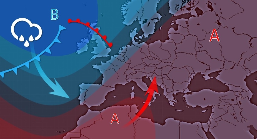 EVOLUZIONE Nel corso del fine settimana la situazione sullo scacchiere euro-atlantico resterà immutata: a ovest una profonda area depressionaria continuerà a pilotare perturbazioni verso il Mediterraneo, a est invece resiste un forte campo anticiclonico che fa da vero e proprio sbarramento ai flussi perturbati.
