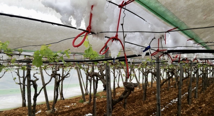 La notte tra il 23 ed il 24 Marzo alcuni areali della Puglia sono stati colpiti da nevicate. I fiocchi hanno continuato a scendere anche durante la mattinata ed abbiamo raccolto delle foto in due diversi areali di uva da tavola.