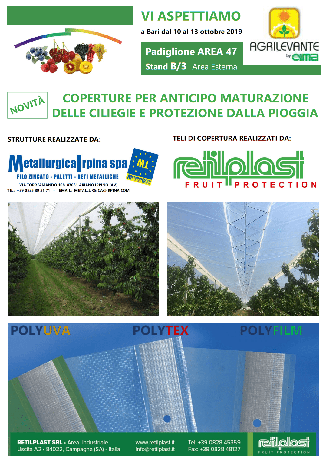 Potrete visionare i prodotti Retilplast – Fruit Protection nel PADIGLIONE AREA 47 presso lo Stand B/3 (area esterna).