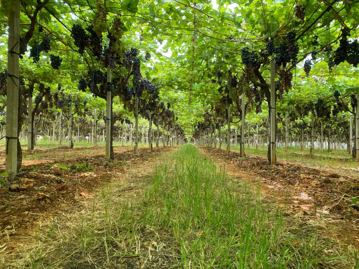 Nella figura 1, possiamo notare un impianto di uva da tavola senza coperture in plastica, caratterizzato da un’eccessiva luminosità al suolo dovuta a una condizione vegetativa limitata a causa dell’eccessivo irraggiamento e delle elevate temperature. Il suolo poco ombreggiato, inoltre, perde una quantità maggiore di acqua per evaporazione, rendendo gli apporti idrici maggiori e difficilmente gestibili in un periodo di siccità come questo.