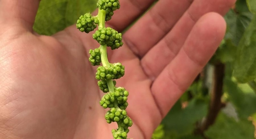 Gasparre continua:”Le cultivar precoci come Black Magic (foto sotto) e Prime coltivate negli areali più precoci del Sud-Est barese, si presentano in questi giorni in fase di distensione del grappolo. Le prerogative sembrano ottime in termini di quantità e produttori ed agronomi confidano in un innalzamento delle temperature, per sostenere la delicata fase della fioritura. I vigneti che ospitano varietà medio-tardive, come Italia si sono appena risvegliate. La natura ci insegna che si può e si deve ripartire, coraggio!”