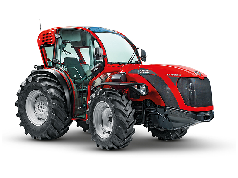 TGF 10900 R offre tutto questo: il telaio sterzante ha un baricentro bassissimo, offrendo ciononostante una buona luce dal suolo grazie al telaio integrale oscillante ACTIO™, uno dei tratti distintivi dei trattori Antonio Carraro. Equipaggiato con la Cabina Protector 100, arriva ad altezze minime – attorno al metro e settanta dipendendo dalle ruote – ideali per filari dal fogliame basso. È in assoluto il 100 CV per frutteti e vigneti più basso e stretto del mercato, ordinabile con due diversi tipi di configurazioni per ruote posteriori da 20 o 24 pollici. Ciò offre due nuovi assetti che incrementano la stabilità, riducono il beccheggio e offrono nuove possibilità per incrementare il comfort sulla piattaforma. Nonostante il maggior ingombro del motore 3B per via dei nuovi dispositivi filtranti dei gas di scarico DPF, l’altezza del cofano rimane uguale ai modelli motorizzati fase 3A, a vantaggio della visibilità frontale e del lavoro in ambienti angusti.