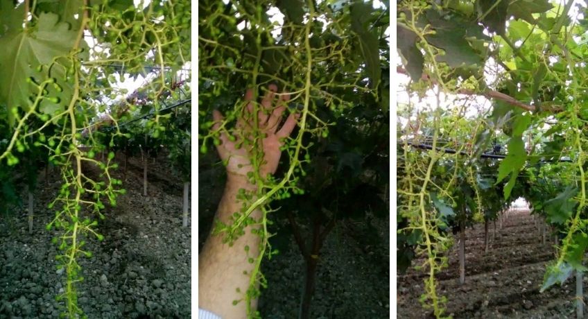 Questo è il primo frutto – esordisce Salvatore – per le piante che vedete in foto. Nel corso di questa settimana i grappoli si mostrano in fase di post allegagione/inizio ingrossamento. La produzione è buona; inoltre fino ad oggi non abbiamo riscontrato particolari problemi da parte di patogeni fungini o parassitari“.