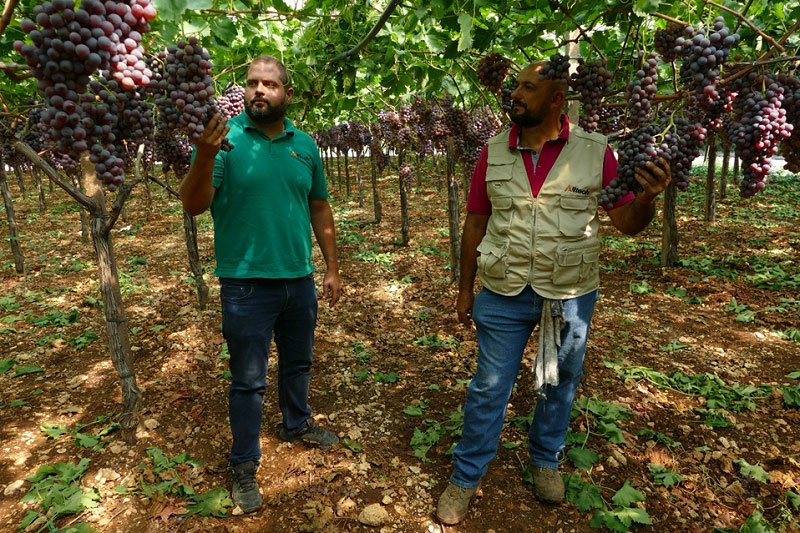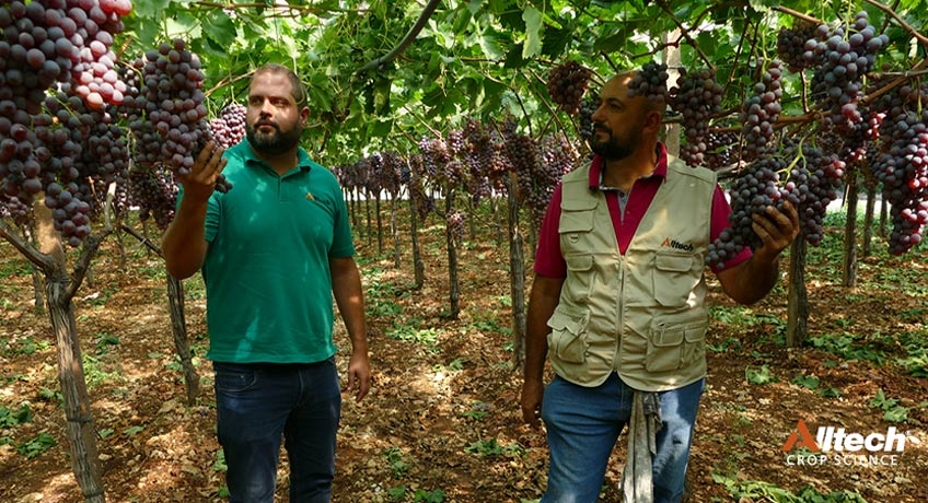 Nella foto il produttore Nunzio Lucente, accompagna il tecnico Alltech Crop Science Giuseppe Pecoraro, in una visita nella sua azienda agricola nell’Agro di Noicattaro per ammirare i risultati ottenuti nella campagna 2019.